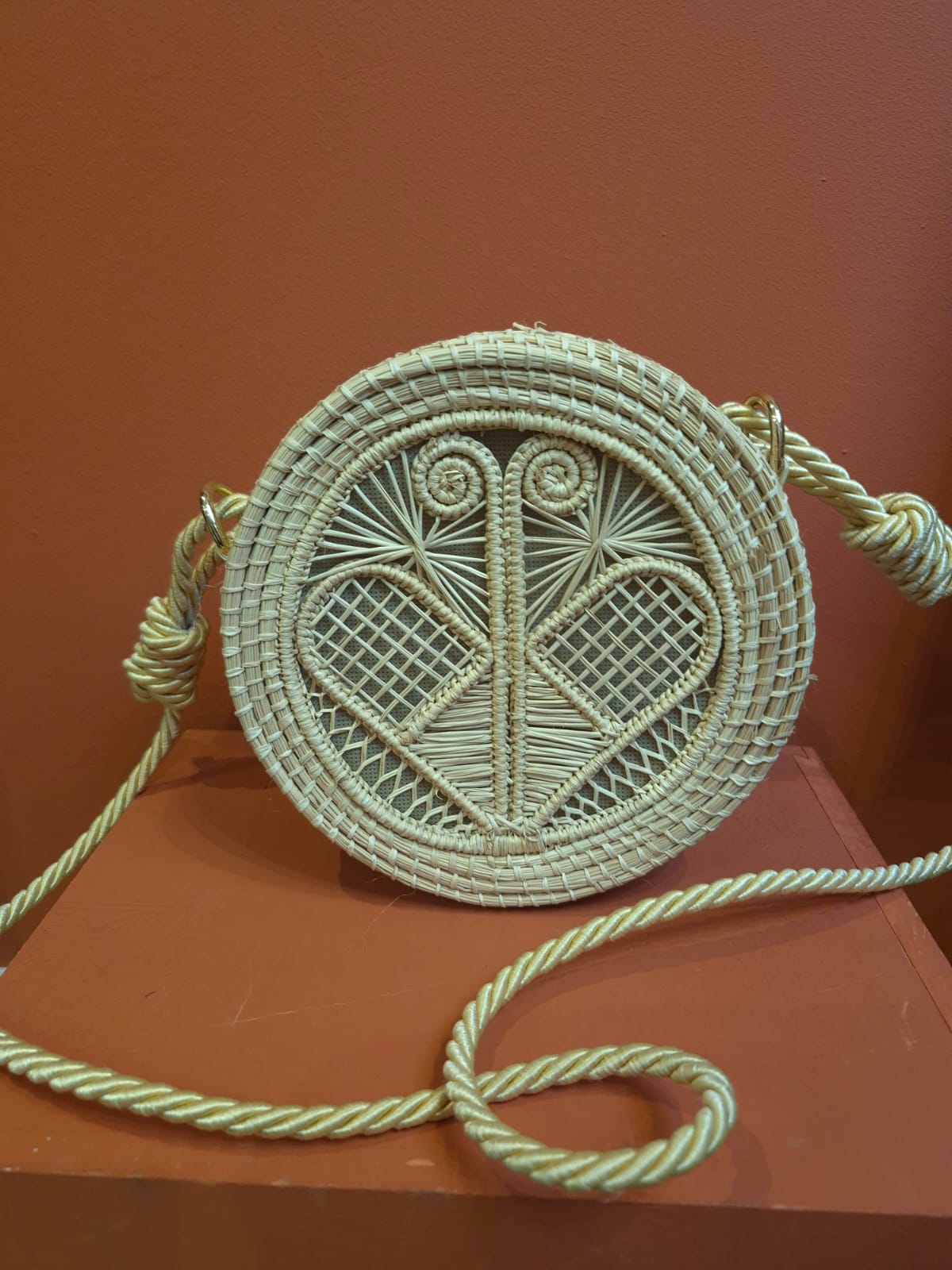 Este bolso hecho a mano es una pieza única que combina tradición y estilo mediterráneo. Tejido en fibra natural con tonos amarillos vibrantes, su diseño calado lo hace ligero y perfecto para los días de verano.  Ideal para paseos, tardes de cóctel o simplemente para llevar el verano contigo donde vayas.